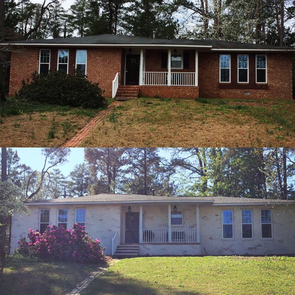 05012018 - A brick fixer upper colonial house gets a limewashed brick exterior. This price may be expensive when compared to exterior paint depending on the type of paint that you normally buy.